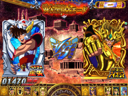 確変の「黄金聖闘士モード」では中デジタルに「VS」絵柄が停止すると大当たりとなり、ラウンド中に発生するバトル演出によって継続か否かが告知される。「ドラマティックバトル」と銘打たれた本機のバトル演出は、青銅聖闘士が優勢になるほど獲得できる出玉が増えていくため、従来機とは異なり勝敗だけでなくバトル中の展開も重要な要素。獲得できる出玉は約590~1360個(『~-黄金-』は約650~1550個)と幅広く、液晶の総演出数は2000パターンを超える圧倒的なボリュームを誇る。青銅聖闘士の必殺技がヒットし、黄金聖闘士を撃破すればフル出玉を獲得できる。